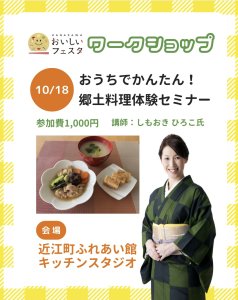 当店オーナーの料理研究家しもおきひろこも、料理体験セミナーの講師として参加させていただきます。治部煮や加賀れんこんのすり流し汁など、金沢の郷土料理にチャレンジ